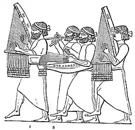 The clavichord, an instrument used up to a recent date, came into existence about the same period as the foregoing, and was another Fig. 3.—Procession of Triumph, showing Dulcimer. step toward the piano. This, like the two instruments mentioned, derived its name from clavis, a key. For the first time gut strings were set aside for wire, which were thrown into musical vibration by a tangent moved by a key, thus forming a rude anticipation of the first piano-action mechanism. Sebastian Bach used the instrument in his home for purposes of inspiration and practice, while Mozart is said to have carried one on his musical journeys. Beethoven was also partial to the instrument. It had very many advantages over the harpsichord, the only popular instrument of the Mozart and Bach era. For instance, it was possible to produce rude piano e forte effects—which results, first attained in the piano, gave it its title—while it had the faculty of action repetition, and a pleasing attribute of being able to simulate human feeling, such as a violinist or vocalist can produce by sliding from interval to interval. As compared with the piano, however, or even the improved harpsichord of the last century, it was a mere toy.