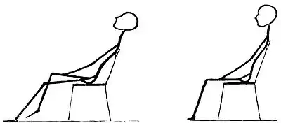 in the chair with his legs crossed and his arms either hanging down or his hands laid loosely in his lap (Fig. 3). As his interest increases his attitude becomes more erect (Fig. 4), and he sits straight up, with his hands folded or laid upon his knees instead