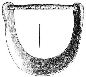 Subsidiary to the weaving and basket-making practiced by women in savagery are spinning, netting, looping, braiding, sewing, and embroidery. Bark-cloth weaving is practiced by women in the tropics all round the world. "Each and all of these require tools which the workwomen must fashion for themselves. Fig. 4.—Eskimo Fat Scraper of Reindeer Antler and Rawhide. (After Mason.) And, though the earth had the raw materials in abundance, it did not yield them without a search which would do honor to the manufacturers of our day.... Aboriginal woman's basketry excites the admiration of all lovers of fine work. It is difficult to say which receives the most praise—the forms, the coloring, the patterns, or the delicacy of manipulation. Primarily, her basketry divides itself into two