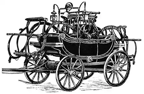 at that time many of the old engines, in different parts of the country, were changed to suction engines, while the first new one built was Hydraulion No. 1, of Providence. With the introduction of suctions the general efficiency of the engines was greatly increased. Every pond, brook, and bucketless well was at the service of the firemen, and a new impetus was given to the manufacture of fire apparatus.