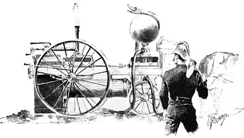 from the old squirting syringes. The men were brave, but did their work of their own free will. After the city government had paid for the engines the firemen assumed all other expenses. It is not the purpose of this article to discuss the organization of the volunteer fire departments, but simply to show how handicapped they were by apparatus that was out of date, and entirely unfit to cope with the fires that were sure to occur in the inflammable and rapidly growing cities.