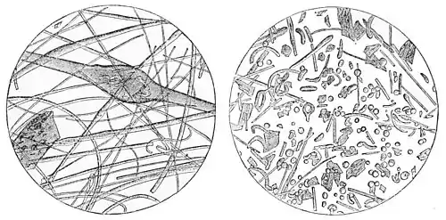 If we lightly shake these locks above a sheet of white paper, a fine dust will fall upon it in which the microscope detects among the finest filaments myriads of brownish, translucent, and sometimes transparent, vitreous pellets. Most frequently they are perfectly homogeneous, but they also often contain inclusions similar to those in the filaments. The perfection of their spherical form is not strictly in proportion to their diameter, as might be sup-