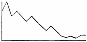 perpendiculars, we draw only a line joining their tops. Fig. 4 shows, then, the curve for the real history, and Fig. 5 shows the abrupt descent, due to a rational comprehension of the situation. I kept an accurate record of the time, in seconds, taken in every trial by every cat in every box, and in them all Fig. 4. there appears no evidence for the presence of even the little reasoning that "what let me out of this box three seconds ago will let me out now." Surely, if an animal could reason he would, after ten or eleven accidental successes, think what he had been doing, and at the eleventh or twelfth trial would at once perform the act. But no! The slope of the curves, as one may see in the specimens shown in Fig. 6, is always gradual. So, in saying that the behavior of the animals throughout the experiments gave no sign of the presence of reasoning I am not giving a personal opinion, but the impartial evidence of an unprejudiced watch. The curves given in Fig. 6 are for cats learning to escape from the box already described, whose door was held by a wooden button on the inside. Some one may object that, true as all this may be, the intelligent acts reported of animals are in many cases such as could not have happened in this way by accident. These anecdotes of apparent comprehension and inference are really the only argument which the believers in reason have presented. Its whole substance vanishes if, as a matter of fact, animals can do these supposed intelligent