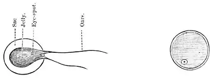 - ↑ The kind of berry-moulds that grow on old wood and stones, and in the snow, is called still protococcus; that which grows in old water, and moves about by oars, is called moving protococcus.