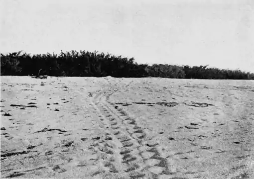Track of Loggerhead Turtle (T. caretta) made in crawling up the Beach to lay its Eggs. Loggerhead Key, Tortugas.