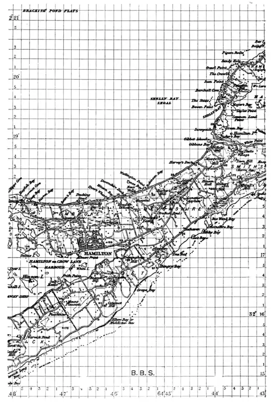 Map 3. The Middle Third of the Bermuda Islands. The Position of the Laboratory is Indicated by the Lines '390' at the Margins of the Map.