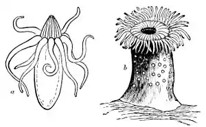 Fig. 1.—a, Arachnactis Albida; b. Actinia Rosea.