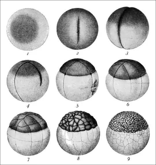 to you—that the process of segmentation of the ovum, with which the development of all the animals of the higher type invariably begins, is really the process of producing young cells. It is the process of rejuvenation. There is not any considerable growth of the living protoplasmic material of these eggs, and at the final stage the total volume of the egg is scarcely bigger than before; and such increased volume as has occurred has been due to the absorption of some of the surrounding water. In many animals not even this increase by the absorption