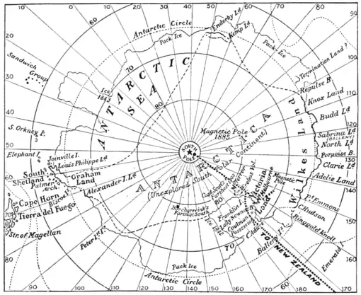 Showing the expeditions of the Shackleton parties toward the south geographical pole and to the south magnetic pole.—From the Independent.