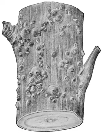 Fig. 14. The San José Scale as it appears on an infested shoot; from the Virginia Experiment Station.