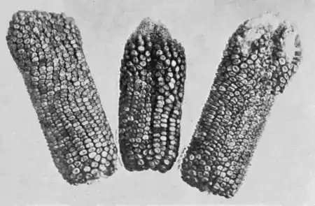 which bear their ears high and stalks which bear them low, stalks with long and stalks with short ear shanks, stalks with different leaf markings and with notably different tendencies to produce suckers. Differences are everywhere present even in the ears, as is shown in the accompanying photograph (Fig. 1). A large number of these differences are simply fluctuations produced by the environment and are not inherited. The obscuration of heritable variations by the fluctuations and the mixed condition of the natural types makes it a difficult task to isolate the most productive types. Many variations of technique have been proposed