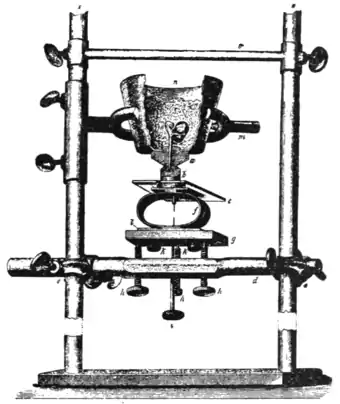 Fig. 6. Method of determining the longitudinal power of growth in roots. The roots are held firmly in two plaster of Paris casts, and the amount of pressure indicated by the spring. (After Pfeffer.)