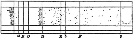 Fig. 17. Distribution of Bacteria in the Spectrum. The largest group is in the ultra-red at the left; the next largest group is in the yellow-orange close to the line D. (From Jennings, after Engelmann.)