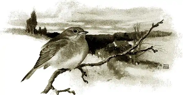 THE BLUEBIRD (Spring) When the snow is vanishing, And the sun is banishing Ice and snow, that held the earth in thrall; Then, without one word of warning, Early on some breezy morning, We are wakened by the bluebird’s call: “Come along, With a song! Life and love together Bring the light Out of night, And clear the cloudiest weather!” |