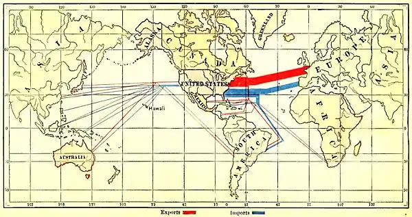 MAP SHOWING RATIO OF IMPORTS TO EXPORTS, AND GENERAL DIRECTION OF EACH.