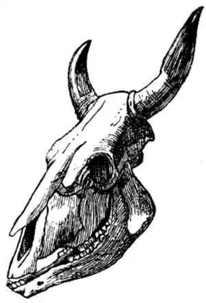 modern Italy is thus expressed by McKenny Hughes[1]: "If a selection of the lighter coloured individuals of the common draught-ox of Italy were turned out in a park in England, no one would suspect that they did not belong to the wild white breed. … A comparison of the skeleton of the Chillingham bull in the British Museum with that of an Italian bull presented by the King of Italy, shows that there is no essential difference between them."