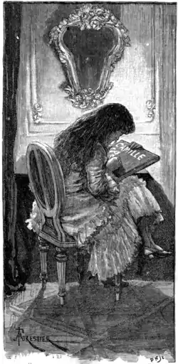 Upon Camille's return from the opera, she was possessed with but one idea. She made her uncle understand that she wished for writing materials. Although the good man wanted his supper, he ran to his chamber, and returned with a piece of board and a morsel of chalk, relics of his old love for building and carpentry.