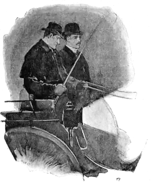 "Now, Watson," said Holmes, as a tall dog-cart dashed up through the gloom, throwing- out two golden tunnels of yellow light from its side lanterns. "You'll come with me, won't you?"