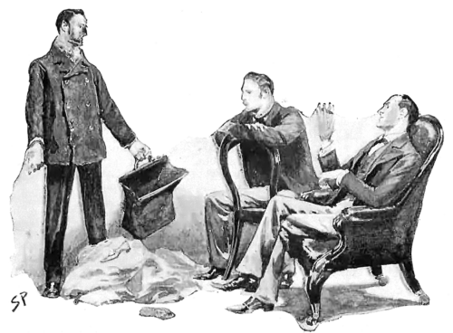 The official detective was attired in a pea-jacket and cravat, which gave him a decidedly nautical appearance, and he carried a black canvas bag in his hand. With a short greeting he seated himself, and lit the cigar which had been offered to him.