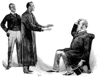 He was a man of about fifty, tall, portly, and imposing, with a massive, strongly marked face and a commanding figure. He was dressed in a sombre yet rich style, in black frock-coat, shining hat, neat brown gaiters, and well cut pearl grey trousers. Yet his actions were in absurd contrast to the dignity of his dress and features, for he was running hard, with occasional little springs, such as a weary man gives who is little accustomed to set any tax upon his legs. As he ran he jerked his hands up and down, waggled his head, and writhed his face into the most extraordinary contortions.
