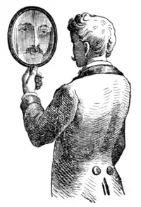 If instead of a candle we place our head before a concave mirror, we shall see ourselves magnified as in fig. 21.