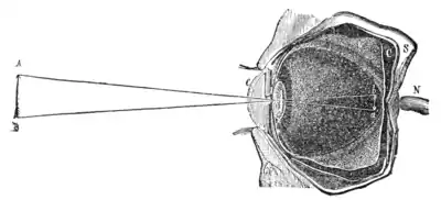 Immediately behind the pupil is O, a bi-convex lens to transmit the rays of light to the retina. It is generally called the crystalline lens.
