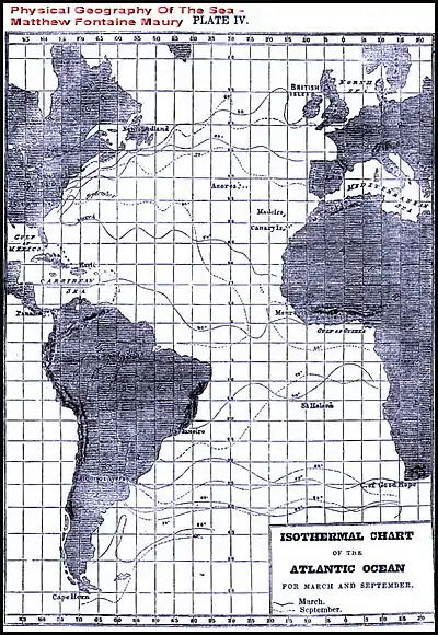465. As already stated, the investigations show that the momentum of the southeast trade-winds is sufficient to push the equatorial limits of their northern congeners back into the northern hemisphere, and to keep them, at a mean, as far north as the ninth parallel of north latitude. Besides this fact, they also indicate that while the northeast trade-winds, so called, make an angle in their general course of about 23º with the equator (east-northeast), those of the southeast make an angle of 300 or more with the equator (southeast by east). I speak of those in the Atlantic, thus indicating that the latter approach the equator more directly in their course than do the others, and that, consequently, the effect of the diurnal rotation of the earth being the same for like parallels, north and south, the calorific influence of the sun exerts more power in giving motion to the southern than to the northern system of Atlantic trade-winds.