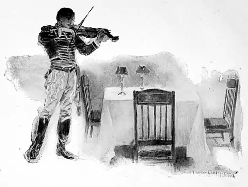 “Why, that violin chap,” said the Englishman. “Don't you see? He's been playing to the only vacant table in the room, and to an empty chair.”