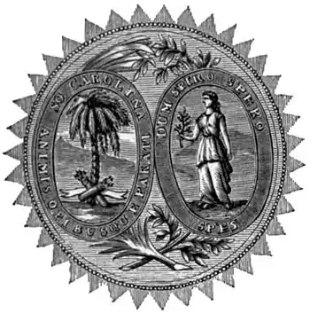 The Santee canal, 22 m. long, connects Charleston, through Cooper river, with the Santee. There are also several short canals, having an aggregate length of about 30 m. At the beginning of 1875 there were 12 national banks in operation, with a capital stock of $3,135,000; circulation, $2,167,420; circulation per capita, $3 07; ratio of circulation to the wealth of the state, 1 per cent.; to bank capital, 69.1 per cent.—The government is administered under the constitution adopted in 1868, which provides that slavery shall never exist in the state; that every citizen owes paramount allegiance to the United States; that the state shall ever remain a member of the American Union; no property qualification shall be necessary to eligibility to office; distinctions on account of race or color shall be prohibited, and all citizens shall enjoy all common public, legal, and political privileges; no debt contracted by the state in behalf of the rebellion shall ever be paid; presidential electors shall be elected by the people; the distinction between actions at law and suits in equity is abolished. The right of suffrage is bestowed upon every male citizen of the United States, 21 years old and upward, who has resided in the state one year, and in the county where he shall offer to vote 60 days preceding the election. Elections are by ballot, and a plurality only of the votes cast is necessary to a choice. Qualified electors, who acknowledge the existence of the Supreme Being, are entitled to hold office, with unimportant exceptions. The legislative power is vested in a general assembly, consisting of a senate composed of one member from each county except Charleston, which elects two senators, and a house of 124 representatives apportioned among the counties according to population, each county having at least one. The senators hold office for four years and the representatives for two. They receive $6 a day during the session, and 20 cents a mile for travel to and from the capital. The sessions of the legislature are annual, beginning on the fourth Tuesday of November. The state election is held on the third Wednesday of October in even years. The executive power is vested in a governor (annual salary $3,500 with a furnished residence) and a lieutenant governor ($2,500), ex officio president of the senate, who hold office for two years; a comptroller general ($3,000), treasurer ($2,500), secretary of state ($3,000), and attorney general ($3,000), who hold office for four years; a superintendent of education ($2,500), and an adjutant and inspector general ($2,500). These officers are elected by the people. The governor and lieutenant governor must have been two years resident in the state. The governor's veto may be overcome by a two-thirds vote of the legislature. The judicial power is vested in a supreme court, circuit courts (each of which is subdivided into a court of common pleas with civil jurisdiction, and a court of general sessions with criminal jurisdiction), probate courts, and courts of justices of the peace. The supreme court consists of a chief and two associate justices, elected by joint vote of the two houses of the legislature for six years. The chief justice receives an annual salary of $4,000, and the associates $3,500 each. The state is divided into eight circuits, for each of which a judge is elected by joint vote of the legislature for four years; each receives a salary of $3,500 a year. The supreme court has in general appellate jurisdiction only. The courts of common pleas have exclusive jurisdiction in matters of divorce, exclusive original jurisdiction in civil cases not cognizable by justices of the peace, and appellate jurisdiction in cases provided for by law. The courts of sessions have exclusive jurisdiction in criminal cases not otherwise provided for by law. A judge of probate is elected for each county by the people for two years. Trial justices appointed by the governor have jurisdiction of civil cases where the amount involved does not exceed $100, and of criminal proceedings for minor offences. A homestead not exceeding $1,000 in value is exempt from sale under execution, to every head of a family. A poll tax not exceeding $1 may be levied for school purposes. Provision is made for taking decennial censuses, beginning in 1875. The property of a married woman is not liable for the debts of her husband, and she may deal with it in all respects as if unmarried. Before the adoption of the present constitution, divorce was unknown in the state. Divorces are now granted for adultery or desertion for two years; and the one deserting may obtain a divorce if the desertion is justified by cruel treatment, or by neglect of the husband to provide maintenance. The death penalty is abolished, except in cases of wilful murder. Arson and rape are punishable by imprisonment for life or for a period not less than 10 years; the penalty of manslaughter and of burglary is imprisonment for a period not exceeding 30 years. The legal rate of interest, in the absence of agreement, is 7 per cent., but any rate may be contracted for. A convention to revise the constitution may be called by vote of the people, the question having been submitted to them by a two-thirds vote of each house of the legislature. Specific amendments must be proposed by two thirds of each house, voted for by a majority of the people at the next general election, and afterward ratified by a two-thirds vote of each house of the next general assembly. The state has two senators and five representatives in congress, and is therefore entitled to seven votes in the electoral college.—The state debt on Nov. 1, 1874, was reported at $17,017,651, including $9,540,750 bonded debt, $2,679,293 floating debt, and $4,797,608 contingent liabilities. Not included in this statement are bonds to the amount of $5,966,000 issued under the act of March 23, 1869, for the conversion of state securities, which have been declared by 