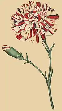 Flowers which are cultivated from age to age are continually producing new varieties, hence there is no standard as to name, beauty, or perfection, amongst them, but what is perpetually fluctuating; thus the red Hulo, the blue Hulo, the greatest Granado, with several others celebrated in the time of Parkinson, have long since been consigned to oblivion; and it is probable, that the variety now exhibited, may, in a few years, share a similar fate; for it would be vanity in us to suppose, that the Carnation, by assiduous culture, may not, in the eye of the Florist, be yet considerably improved.