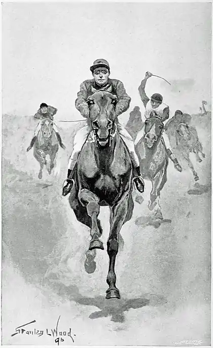 Mr. "Warren Telfer was a gentleman of means, and the owner of a few—very few—racehorses. But he had a great knack of buying hidden prizes in yearlings, and what his stable lacked in quantity it often more than made up for in quality. Thus he had once bought a St. Leger winner for as little as a hundred and fifty pounds. Many will remember his bitter disappointment of ten or a dozen years back, when his horse, Matfelon, starting an odds-on favourite for the Two Thousand, never even got among the crowd, and ambled in streets behind everything. It was freely rumoured (and no doubt with cause) that Matfelon had been "got at" and in some way "nobbled." There were hints of a certain bucket of water administered just before the race—a bucket of water observed in the hands, some said of one, some said of another person connected with Ritter's training establishment. There was no suspicion of pulling, for plainly the jockey was doing his best with the animal all the way along, and never had a tight rein. So a nobbling it must have been, said the knowing ones, and Mr. Warren Teller said so too, with much bitterness. More, he immediately removed his horses from Ritter's stables, and started a small training place of his own for his own horses merely; putting an old steeplechase jockey in charge, who had come out of a bad accident permanently lame, and had fallen on evil days.