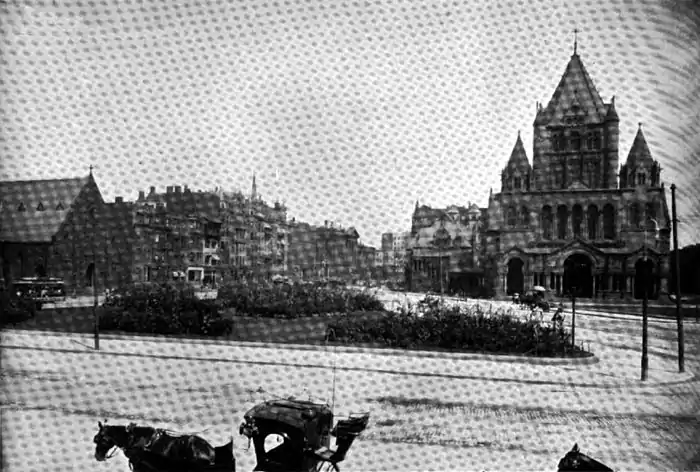 During the 19th century two important changes in the Boston landscape affected the future of the city, in the regions both of residence and of business. The first of these was the filling in of the Back Bay, an arm of the Charles River which spread between the Common and the hills of Brookline, running south and east as far as the Neck or narrow strip of land connecting Boston and Roxbury. From the early years of the century changes in the shore line of Boston had been wrought by cutting down the principal hills and filling out the irregularities of the harbor front. The first step in the series of events which led to the conversion of the Back Bay from water into land was the granting of a charter in 1814 to the Roxbury Mill Corporation, permitting the building of dams across the Back Bay and confining its water for mill purposes. To these rights the Boston Water Power Company succeeded in 1832. At about the same time the Boston & Providence and Boston & Worcester railroads invaded the Back Bay with their bridges. Moreover the waters became unsanitary through lack of drainage, and to solve the problem, hygienic and legal, a State commission was appointed and made a full report in 1852. Its recommendations to create the whole tract of land now known as the Back Bay did not at once satisfy the various conflicting interests, but in 1858 the actual work of filling up the waters was begun. The result was a large enrichment of the State treasury, and the addition to the city of the whole district occupied by the residences, clubs, churches, hotels and other institutions connected with the most prosperous life of the city. The original peninsula of Boston contained 783 acres. Through its encroachments upon water, largely in the Back Bay, it has grown to 1,829 acres. With the accessions of outlying districts, the total area of the city is now 29,158 acres.