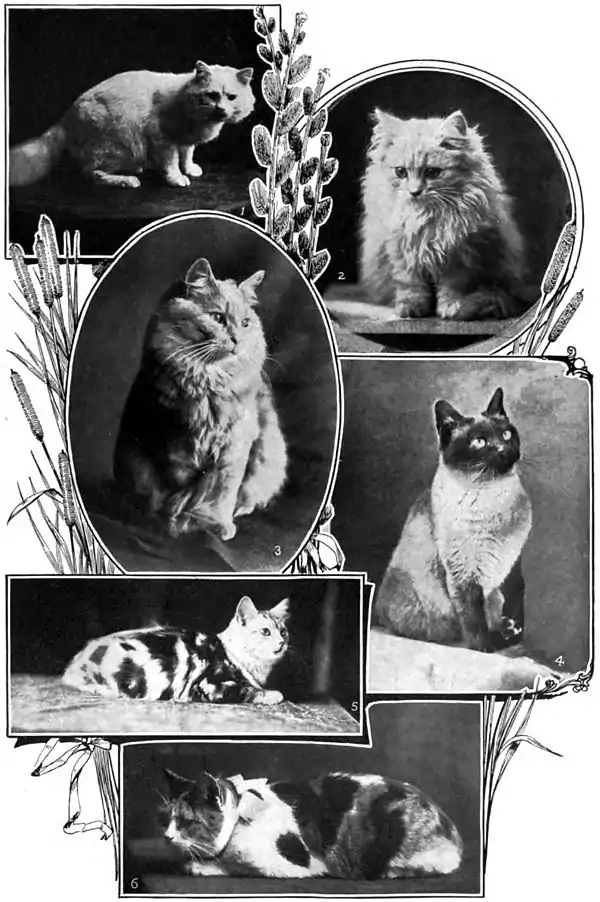 Cat-fanciers' Associations.— The fortunes of the cat are now more or less regulated by clubs and associations, and there are homes, hospitals and refuges in many places and in many lands. The principal clubs are the National Cat Club founded in 1887, with headquarters in London; the Scottish Cat Club, founded in 1894; the Cat Club, London, founded in 1898; the Northern Counties Cat Club, the Silver and Smoke Persian Cat Society, the Siamese Club and the Orange, Cream, Fawn and Tortoise-shell, founded in 1900; the Black and White Club, the Blue Persian Society, the Chinchilla Cat Club, the Short-haired Cat Club, the Midland Counties Cat Club, the British Cat Club and the Manx Cat Club, founded in 1901. All the above are in Great Britain, but many have members in America. In the United States there are the Beresford Cat Club, founded in 1899, with headquarters in Chicago; the Atlantic Cat Club, with headquarters in New York; the Chicago Cat Club, the Louisville Cat Club, the Pacific Cat Club, the Orange and Cream Society, with headquarters in Chicago, the Washington, D. C., Cat Club, the Detroit Club, etc. All these have been founded since 1899; so we can see that the advances made of late years have been sudden and rapid; and they will continue to grow; for shows are held in many of the principal cities and are yearly fixtures. Prices for cats increase; and whereas $25 was considered a good price a few years ago, some of the best have been recently sold for $250 each, and many at $75 and $100. The largest price of which we have record as having actually been paid in cash for a cat is $300, which was the price Lady Decies paid Mrs. Greenwood for Lord Southampton; although I expect to see this exceeded in time to come, for competition enhances values, and the best specimens and most perfect will bring high prices from those who want them. All this will tend to draw attention to the cat and better the race and its general conditions.