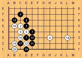 ![]() Plate 20 XI Handicap Black is supposed to have a stone at D 4 also. Plate 20 (B)