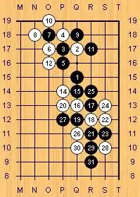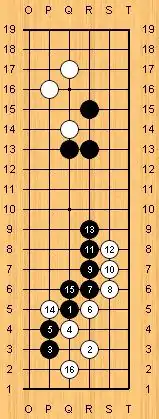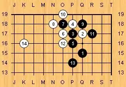 V No Handicap The following stones are supposed to be on the board: Black, Q 13, R 13, R 15; White, Q 14, P 16, Q 17.