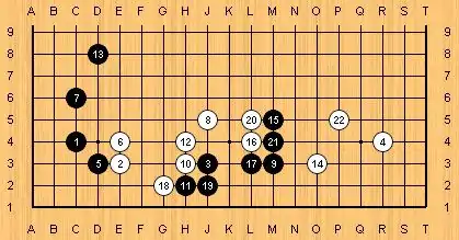 Black has the better position. This is an old "Joseki." It is not much liked at the present time.