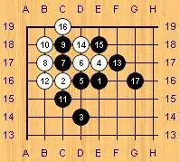 Suppose Black does not play No. 4, E 2, but plays elsewhere, then the following continuation might occur: