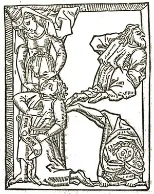 Willet copy, 1813 245 guineas, Inglis copy, 1826 36l. 15s. Willet copy, 1833 36l. 15s. Lucca copy, 1848 89l. 5s. Stevens copy, 1849 11l. 12s. Sykes copy, 1824 18l. 17s. 6d. Rendorp copy, 1825 17l. 8s. 6d. Devonshire copy, 1815 210l. - ↑ Three typographic editions of the Bible of the Poor have been printed:—1. An edition by Albert Pfister, at Bamberg, in 1461. In this edition, the engravings are small and coarsely cut. 2. An edition by Anthoine Vérard, in Paris, about 1500. This edition is a close imitation, beautifully printed, of the first xylographic edition, with explanations in French on the back of the engraved pages and on supplementary leaves. 3. An edition of very different arrangement having 118 small wood-cuts, printed by Giovanni Andrea Vavassore detto Vadagnino of Venice, between 1515 and 1520. Berjeau, Biblia Pauperum, p. 17.