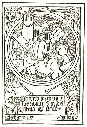 - ↑ 1.An edition in Latin, of fifty pages, and supposed to have been engraved and printed by Melchior Wohlgemuth of Nuremberg, between the years 1450 and 1460. Only one copy of this book is known. 2. An edition in German, of forty pages, by Friedrich Walther and Hans Hürning, at Nordlingen, 1470. 3. An edition in German, attributed to Sporer, at Erfurth, in 1475.