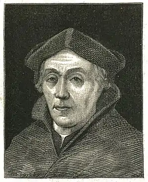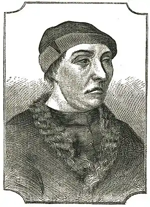 Meerman refused to accept this head as a faithful portrait He produced a new likeness of the inventor, and claimed for it a superior truthfulness. In the same year, 1765, Van Osten de Bruyn published an engraving of the same head, with this explanation: " Laurens Janszoon, sheriff, of the town of Haarlem, inventor of the noble art of printing … after an old picture bought from William Corneliszoon Croon, the last descendant of Laurens Janszoon, who died, unmarried, at Haarlem in 1724." We find no vouchers for the authenticity of this portrait Croon was the man by or for whom the vellum pedigree was continued. He was equally interested with the originator of the pedigree, Gerrit Thomaszoon, in upholding the legend. Whether Croon was ignorant of the fact that Laurens Janszoon, the sheriff, was not Lourens Janszoon Coster, is not so clear; but it is clear that the portrait submitted by Croon does not resemble the portrait furnished by Scriverius. Gockinga asserts that the engraving made by Meerman (after Croon's portrait) is like the engraved head of Sir Thomas More of England. Van der Linde says that the Coster of Meerman closely resembles the engraved portrait of a once celebrated inquisitor, one Ruard Tapper of Enkhuizen.[10] The Coster of Scriverius and the Coster of Meerman are certainly different men.