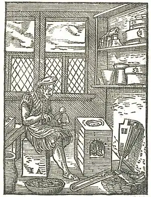 - ↑ The Book of Trades was popular. Two editions in Latin verse were published, one in 1568, and another in 1574, with descriptions by Hartmann Schopper. Chatto says: