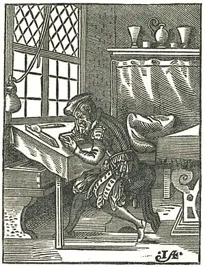 - ↑ The industry of Jost Amman was as remarkable as his skill. The old historian of early printers, Sandraart, says, on the authority of his pupil George Keller, that during the four years in which Keller lived with him, Amman produced designs enough to load a wagon.
