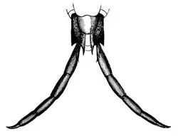 Antenna multiarticulate. Head broad, complanate. Labium anteriorly denticulate, medianly sulcate, emarginate. Pits on the coxa large, ovate, arranged in a single series on a depressed face.