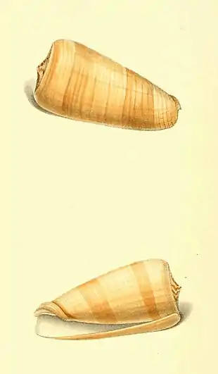 Another rare and remarkable shell of this numerous genus, from the same collection as the Cone last described. I believe it to be hitherto unfigured, and unknown to any writer; for I cannot reconcile it with any of Lamarck's descriptions of species not yet represented.