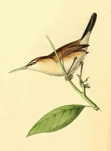 The comparative length of the bill in this genus, (leaving the present bird out of consideration,) offers no generic distinction, because it varies greatly in different species. Some of those found in Brazil have the bill nearly double the length of the common European Wren.
