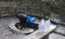 It's still a straight shot northward up Herculesdreef. Directional sign #19 is straight ahead; keep going past it toward #18 and then #16. On your right, you'll see De Steenberg campground, which you can read more about below. Further north still, at the corner of Witte Bomendreef, you'll see two landmarks: on your right, the 🌍 Our Lady of Steenbergen Chapel (Onze-Lieve-Vrouw van Steenbergenkapel), a charming Baroque- and Rococo-style country church dating back over 350 years. On your left is 🌍 Minnebron, a natural spring with drinkable water. A bit further along, on the shore of Geertsvijver, you'll find a creation from the spring of 2014 whose style is completely different from any other sculpture on the trail. Instead of being carved from oak wood, 🌍 Drowning is a figure of a drowning man that's made of a metal wire mesh filled with litter, symbolizing how we all but drown in the solid waste we produce.