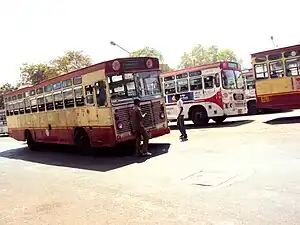 Gujarat State Road Transport Corporation (GSRTC) has buses from all the parts of the Gujarat state entering into the city. The central bus terminus at Geeta Mandir, with other terminals at Subhash Bridge and Naroda; minor stops include Paldi and Sabarmati Tollnaka. It is advisable to pre-book seats due to the likelihood of crowding.