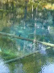 - 🌍 Kaminoko Pond (神の子池 Kaminoko-ike). Literally "Child of God Pond", this is a small pond in the middle of the forest, reachable only by a long dirt track (no 4WD needed). What makes the bumpy trip worthwhile is that the water in the pond is a truly unearthly shade of transparent sapphire blue. The track is a few kilometers north of the Ura-Mashuko (#3) lookout.