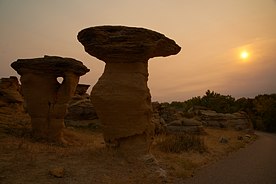 - π Drumheller - the dinosaur-lover's mecca, site of the Royal Tyrell Museum, the largest paleontology museum in Canada, set in the desert-like "badlands" landscape.