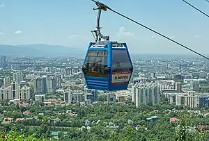 • ๐ŸŒ Kok-Tobe Park. Small Soviet-esque fun fair perched on a hilltop, where the highlight is getting there on the cable car. (The base station is at Luganskiy 2, east end of Abay.) Up top is a series of overpriced rides, games and attractions, and two restaurants; the wildest beasts in the "mini-zoo" are some hens and goats. The park is fenced in with no access to the nearby mountains, but you can walk to or from town via the service road. Not to be confused with Kรถk Tรถbe hill further south. Adult return by cable car 6000 tenge, by minibus 3500 tenge.